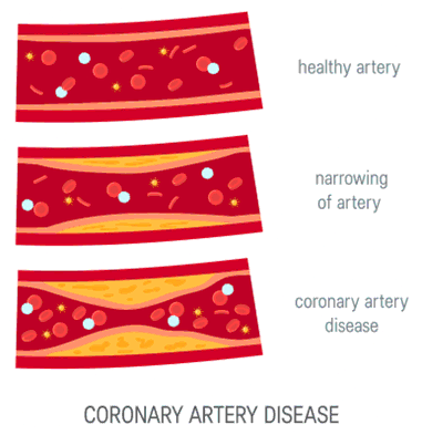 The plaque gradually narrows the arteries over time, eventually causing blockages. This obstruction results in a decrease in oxygen supply to the affected organ, leading to tissue damage, as depicted in Figure b. Additionally, plaques have the potential to rupture, forming blood clots that can swiftly obstruct the artery. Depending on where the cardiovascular disease is located and how severe it is it can cause:
